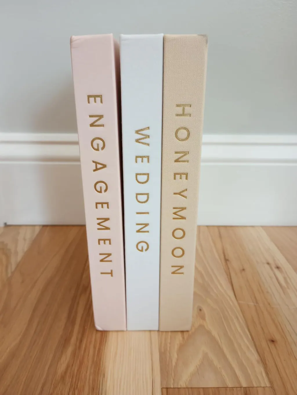 The Ultimate Wedding Memory Book Set captures the entire journey — from the moment they asked, to the day you said yes, to the trip that started your forever. Three beautifully crafted keepsake books, each designed to hold both the digital memories and the irreplaceable physical ones that no photo can replace.
